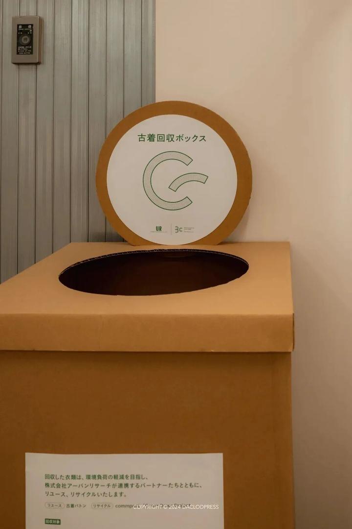 UrbanFamima!!同时,他们也在尝试着以“环保”的态度,为那些来到这里打工的年轻人,解决一些生活上的问题。靠近办公大楼的那一边, UrbanFamima!!还设立了一个「旧衣服回收箱」,以不记名的方式收集市民的旧衣服,以解决都市生活中旧衣回收的时间和经济成本问题。