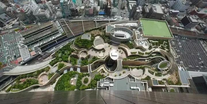 难波公园是位于大阪传统热闹商业区的现代建筑,并非传统意义的公园,是一个购物中心与办公楼的综合体。将城际列车、地铁等交通枢功能与办公、酒店、住宅完美结合,是日本开发成功的城市综合体的代表项目。