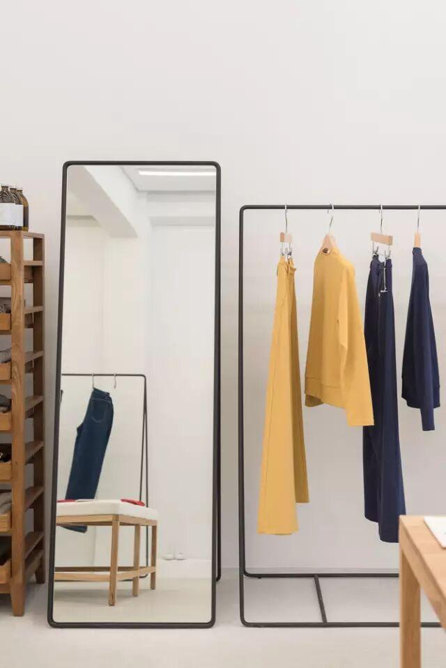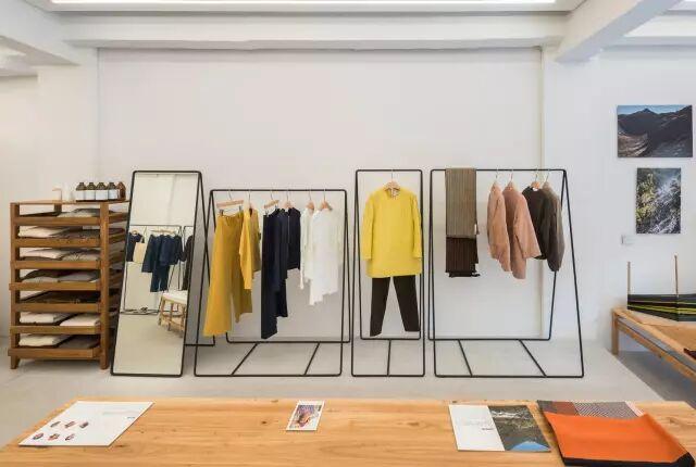 店内设置了两间可移动的更衣室,一个圆形,一个正方形,可以像帐篷一样随机放置。床板也变成了产品展示台。整体空间在视觉上安静有层次,进入这里的顾客会一步步地发掘空间细节,呼应了品牌的“慢”性格。在店铺深处,我们采用了家中常见的功能布局:饮茶、睡觉、工作、收纳。让这个别致的空间在满足顾客体验衣装之美的同时,也能让人们深刻感受到 klee klee 品牌所推崇的生活方式。