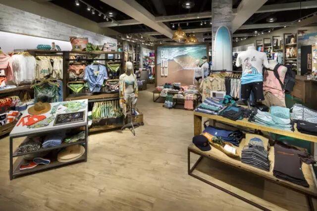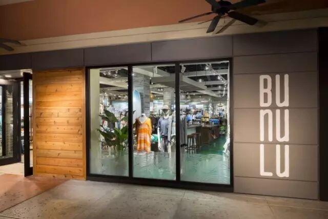 Bunulu是一家销售休闲、户外及运动服装的品牌,旨在让客户享受海岸生活。该店的室内设计也以此为主题,店铺入口区设有一扇漂流木百叶窗和一个成角度的通道,其内部布局是一个隐喻的破碎波,这启发了角落的倾斜布局。