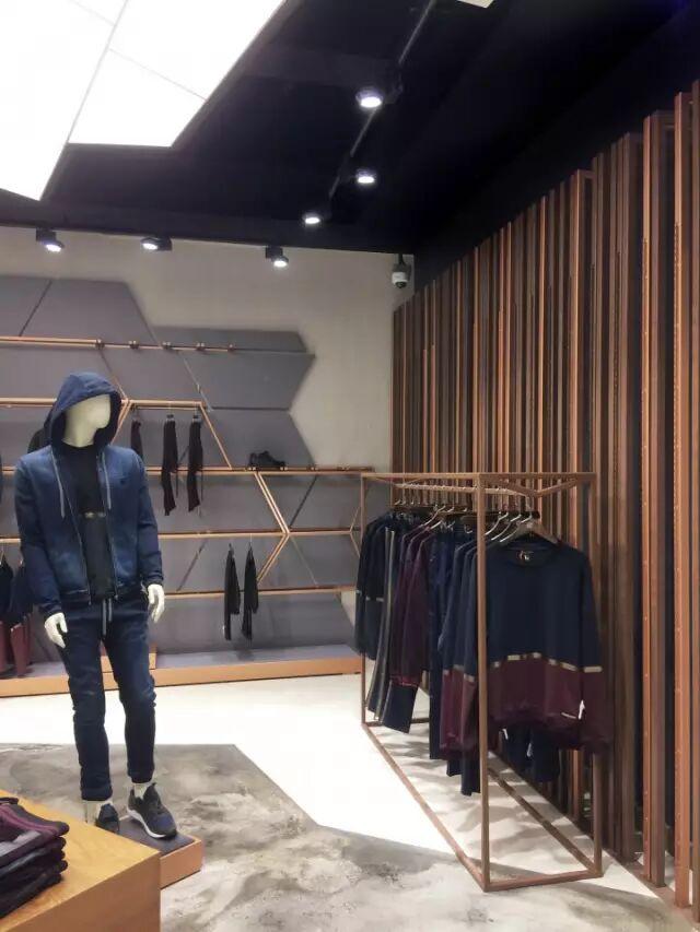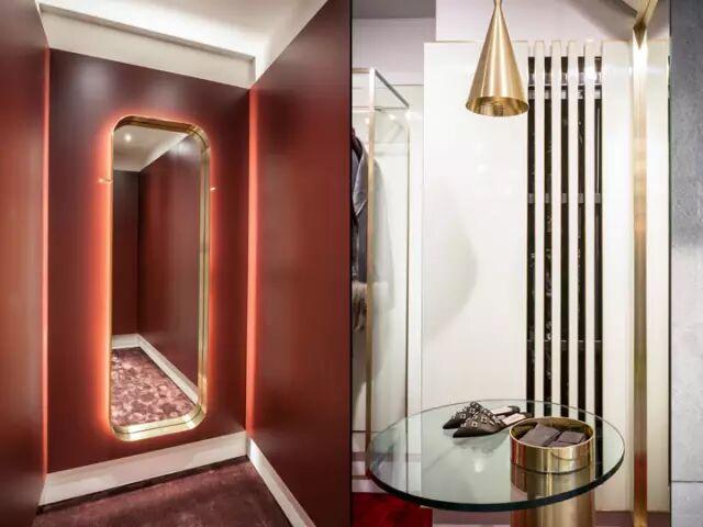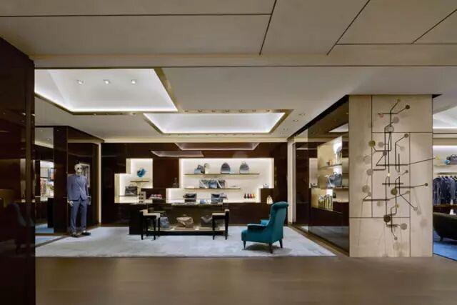 玻璃和黄铜是精品店设计的标志性元素,外观结合这些材料在空间中提供优雅的入口设计,凹凸纹理的地板瓷砖作为多彩元素的背景,商店奢华的本质因为夺目的黄铜吊灯再次强调,华丽的服装,别致的设计,这个服装店展示出G&B品牌的奢华感。