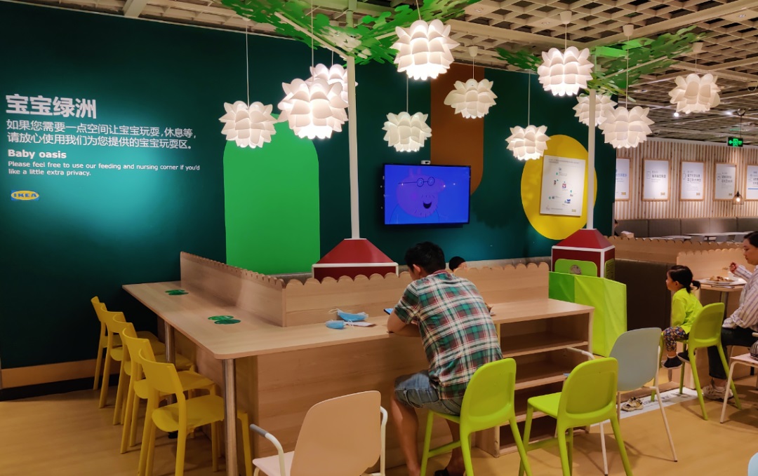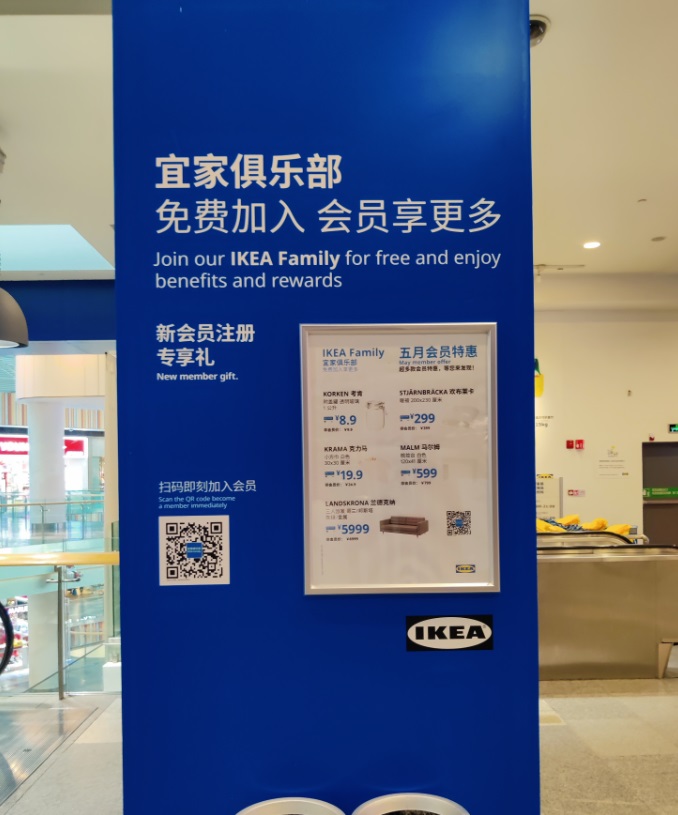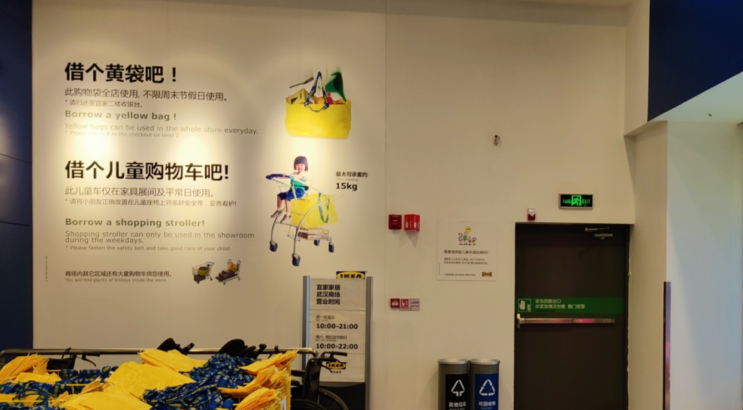 在卖场中顾客在进入销售区前,我们能有什么样的信息传递给消费者,顾客能享受我们提供的什么待遇。这些也是可以通过设计表现与顾客建立无声的沟通,我们可以看看宜家的做法。