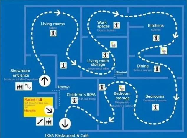 项目内所包含的宜家商场,是宜家在英国的首间城市中心街区店。传统宜家通常单层面积非常大,一方面内部缺少自然光线,另一方面,精心设计过的动线形成了“迷宫般”的布局,拉长停留时间的同时也让很多人陷入“无休止的选择”焦虑及争吵中,甚至有外国媒体称这种布局为“婚姻关系死亡陷阱”。