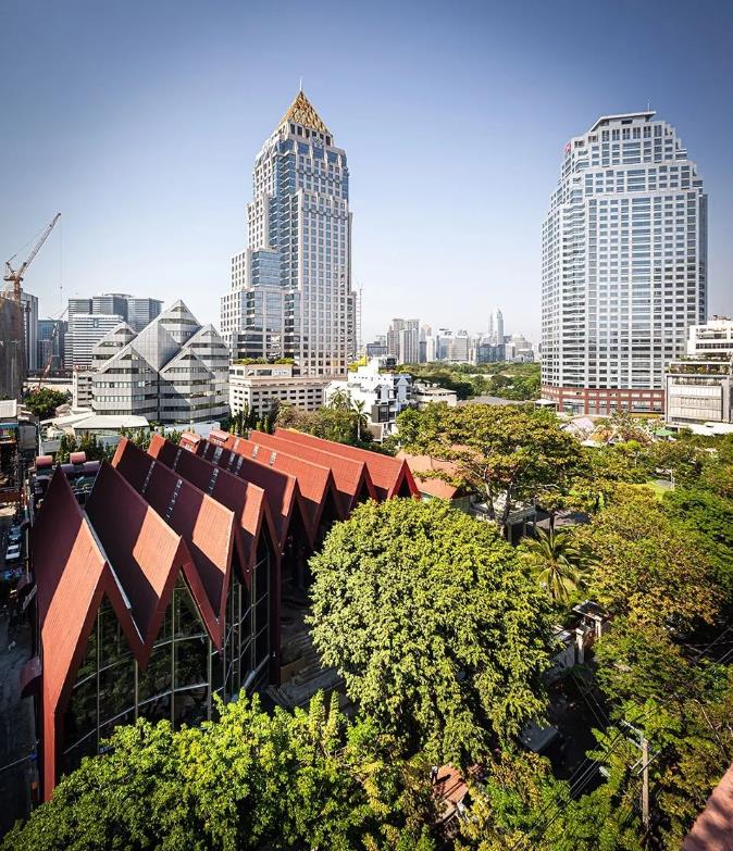 一百年前经过曼谷Saladaeng区的铁路是该国第一条铁路的一部分,在那时火车站红色的屋顶在绿油油的稻田中尤为瞩目。而项目正是坐落在今天这片充满活力区中,这段历史也成为了该设计的重要灵感来源。