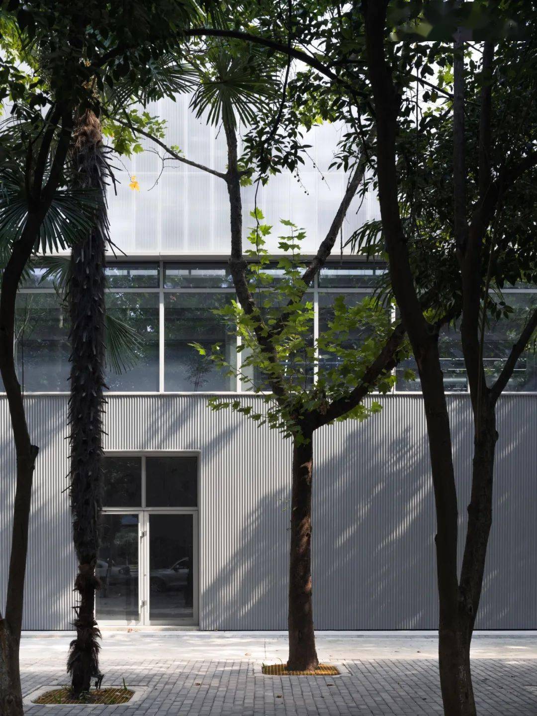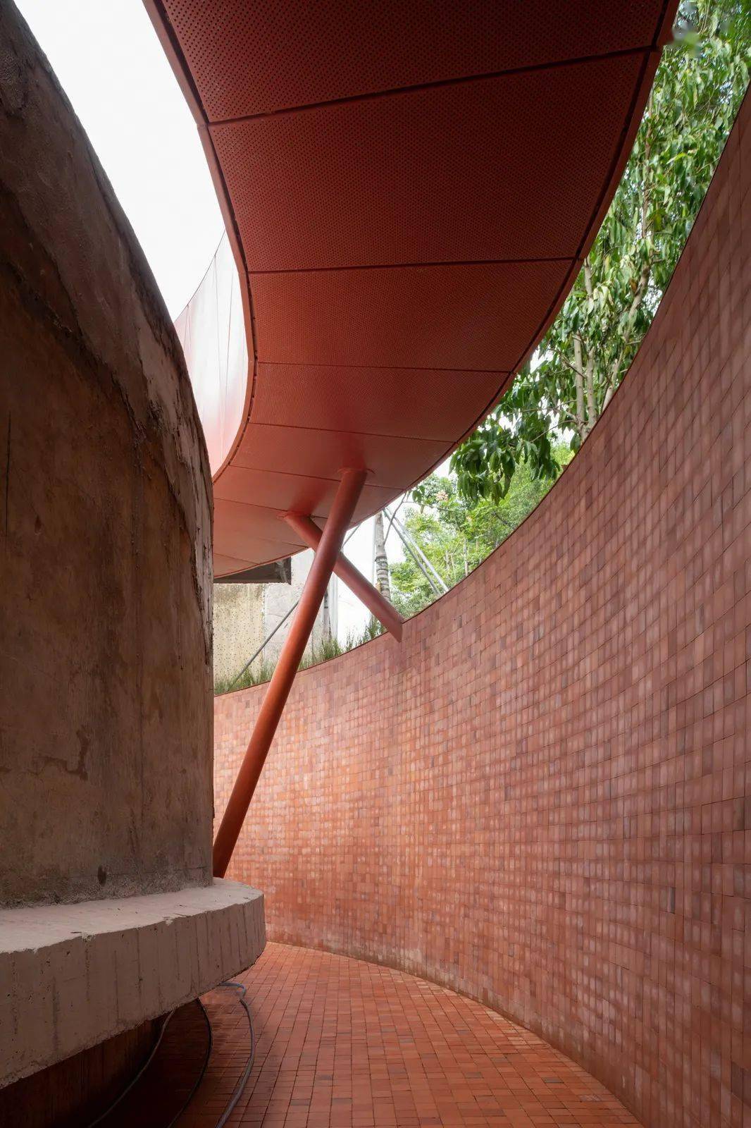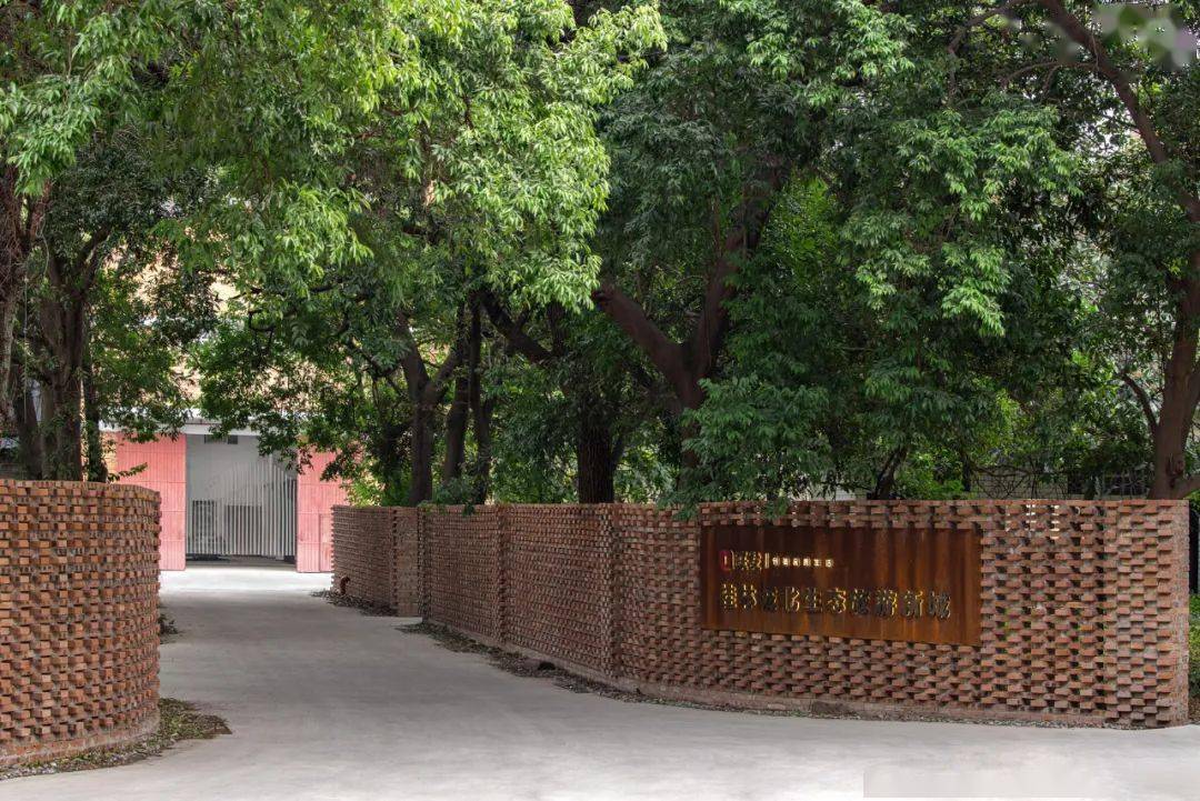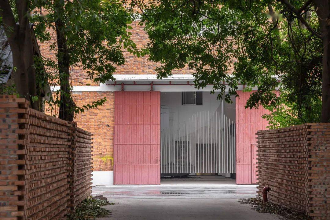 两道间错垒砌的红砖矮墙将步道两旁的绿意归拢,以充满自然生机的仪式感将造访者引向入口。