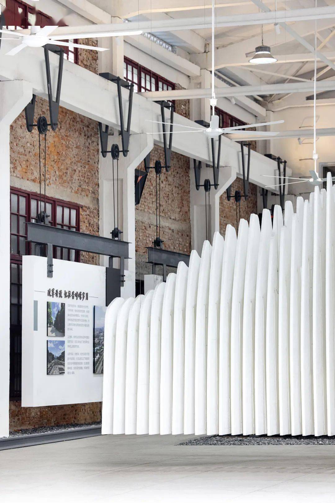 展厅内剥脱处理后的红砖内墙不加粉饰,袒露出岁月的粗糙肌理。