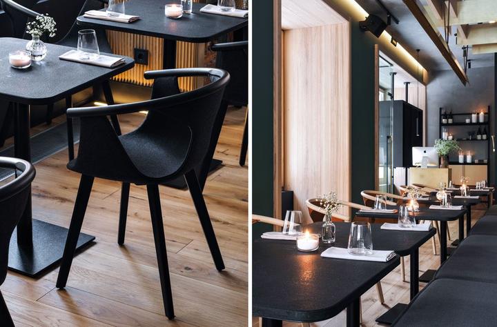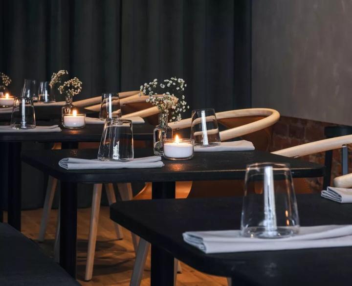 “美学极简主义”在食物和室内装饰中都得到体现。后者的设计旨在最大程度地使色彩柔和,无论空间配色亦或灯光,都不会阻止客人感到舒适并全神贯注于美食。