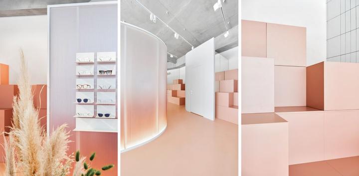 Radius 58是位于俄罗斯圣彼得堡的眼镜品牌,这家开设在中央大街的店面以“明亮”为设计主题,主要展柜的色彩具有柔和的颜色渐变,淡淡的粉红色通过镜面和灯光的反射,可以吸引路人的注意,无论白天还是夜晚,看起来都非常令人印象深刻。