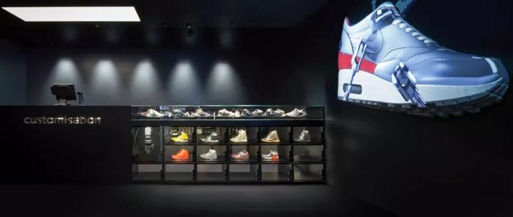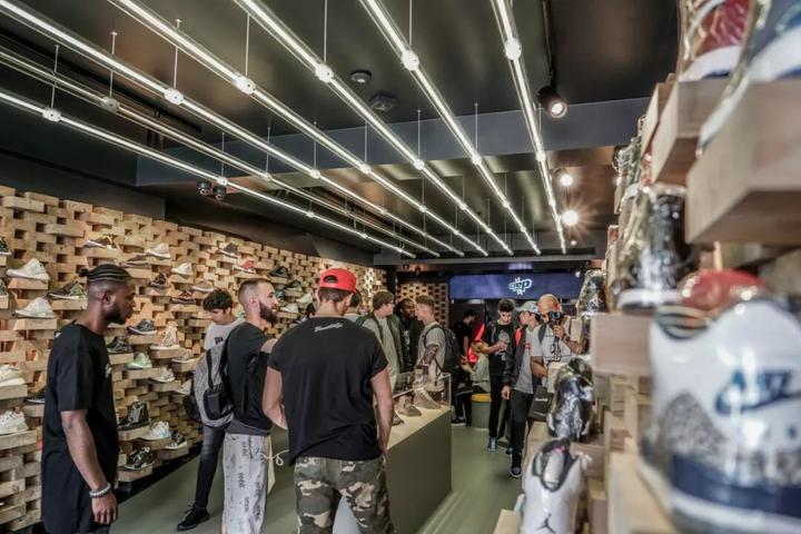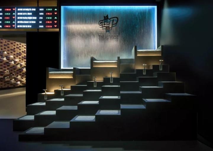 CREP品牌彻底改变了运动鞋护理行业。他们在伦敦的商店设有两个区域。第一个区域是运动鞋商店,提供限量版和独特的收藏品。在设计上融合了英国城市景观和嘻哈文化,波浪形的展台和绚烂的灯光是该区域的特点。