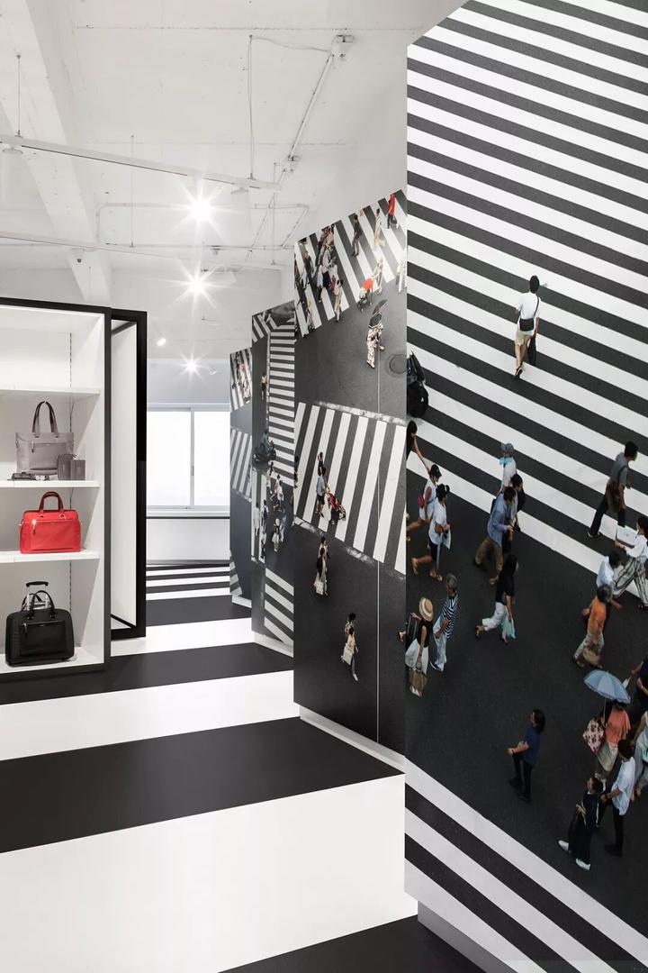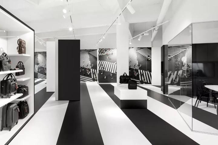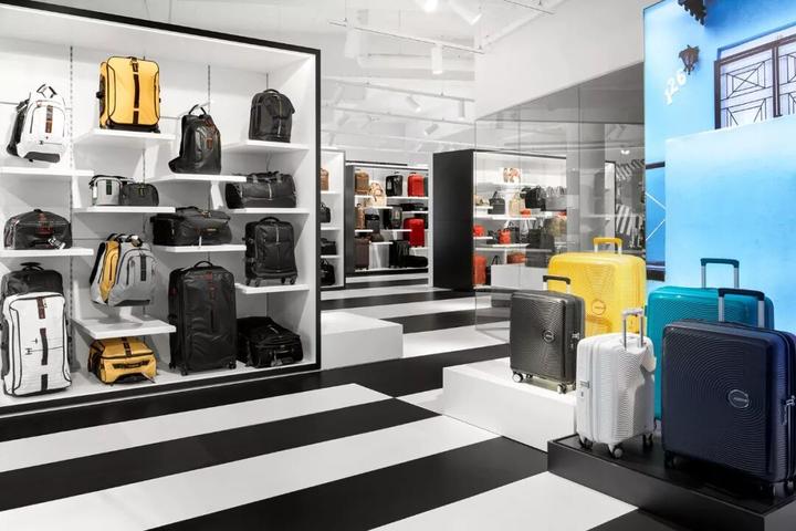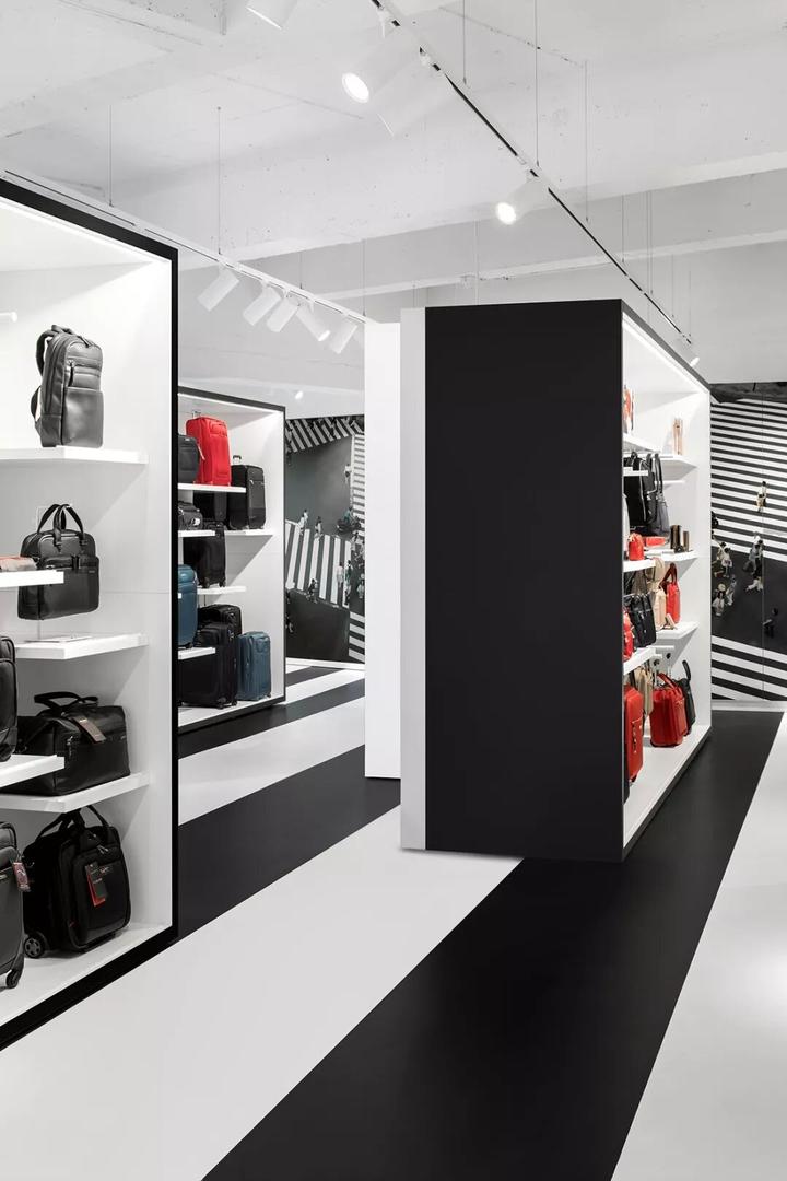 Samsonite每个子品牌都有其自己的展示方式,包括各种各样的产品,同时使整体外观保持清晰明了。倾斜的图案和对角线放置的方式提供了强烈的方向感:对角线布局使眼睛产生了扭曲,似乎整个空间都在旋转。