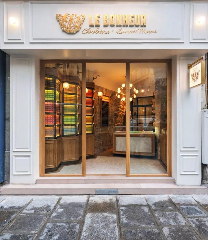 Le Bonheur是欧洲久负盛名的糖果品牌,它诞生于巴黎,第一家旗舰店坐落在距离卢浮宫五分钟步行路程的小街上。这家小型的精品店延续了其一贯的“幸福”主题,保留了原始建筑真实的美感,通过大橱窗和灯光设计让产品本身散发光芒。