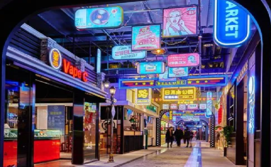21区block创意街区总共地下两层,根据不同主题打造出8个创意公园,集时尚、潮流、文创、玩乐为一体,还将亮眼的霓虹元素、独特的复古街头文化以及年轻潮流主题装饰相结合,打造符合年轻人口味的网红主题街区。此外,2018年夏季北京朝阳合生汇联合旗下餐饮商户,围绕“夜经济”,结合网红街区21区-BLOCK”独特空间属性,创新推出以“深夜食堂”为主题的9点夜间创意生活时尚汇,深夜食堂的推出成功将合生汇带火,成功将地下冷区盘活,让B1、B2这样处于劣势的楼层发挥了很大的用处,吸引了大量的客源。