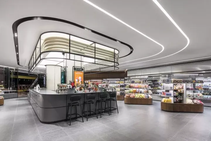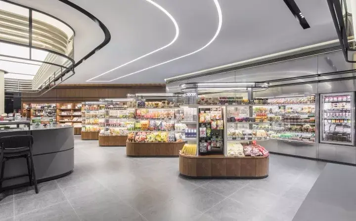 该商超由Studio U.LAB设计,空间的设计和定位来源于解决快速变化的饮食文化,而生活在节奏快速迭代的年代,越来越多的年轻人很难投入时间和许多食物来做饭。因此空间设计定位于一种叫“城市共享冰箱”这样一种概念,实现每天供应新鲜的健康食品。