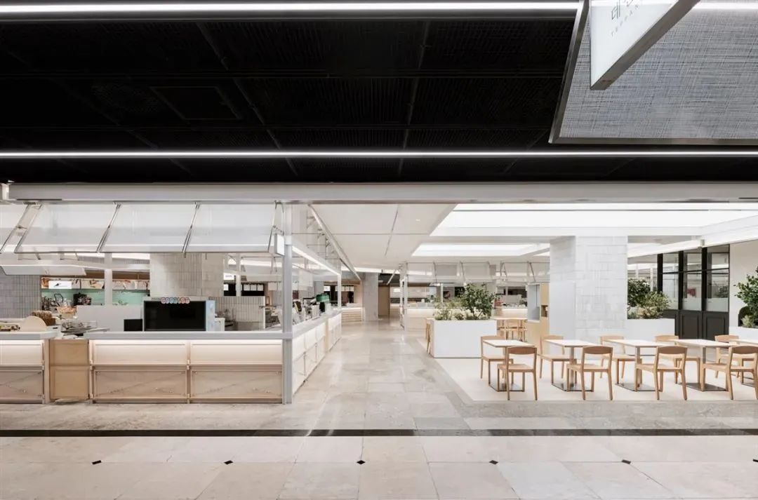 釜山现代百货分店在2024年完成了其食品中心的改造项目,正式开启了向“连接现代”的转型之旅。采用了“日夜市集”作为核心主题,将餐饮区和零售区融入日常生活的场景中。
