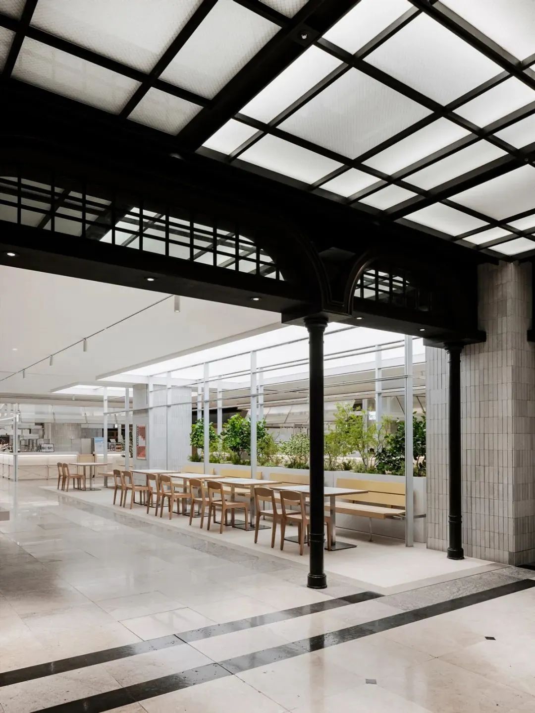 锯齿屋面的顶部由偏光玻璃构成,可以过滤射入的自然光,既照亮了整个空间,又不会对商品、店家和消费者产生不良影响。