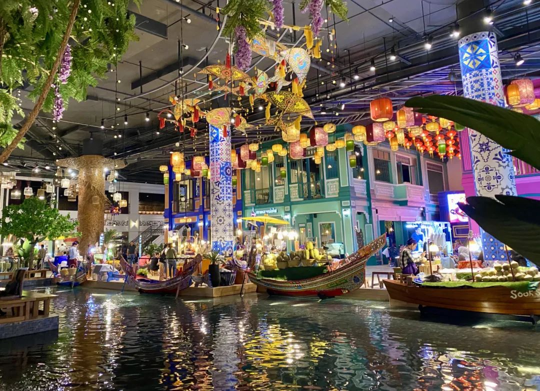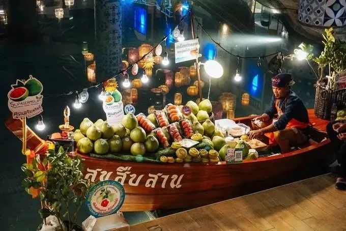 作为体验泰国本地生活的一项内容,热闹的水上市场是一处很多游客都会去的网红景点。在曼谷购物中心ICONSIAM中,规划了一个Sook siam区域,占地超过15,000平方米,荟萃全泰国四大部77府的3000多个泰国传统工艺、名产、艺术创作、表演艺术…其中,就有泰国第一个室内水上市场(可以看做国内的菜市场)