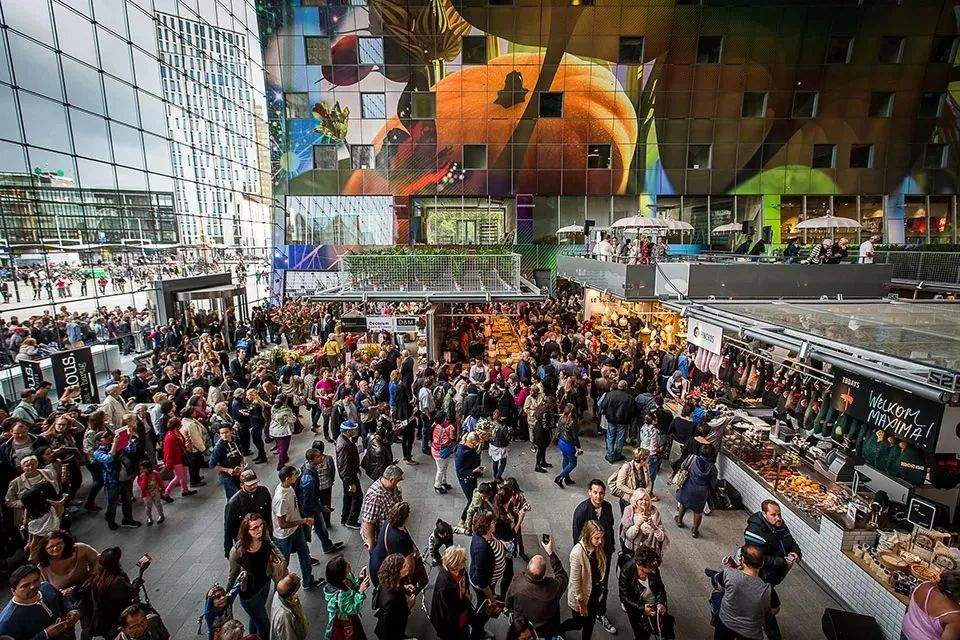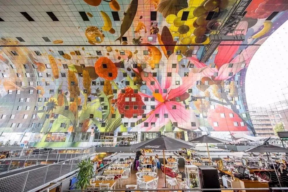 鹿特丹市场将城市功能与艺术展现惊喜融合,让我们看到了“菜市场”不再只是嘈杂喧闹的,它也可以拥有层次感、流通感、互动感和艺术感。
