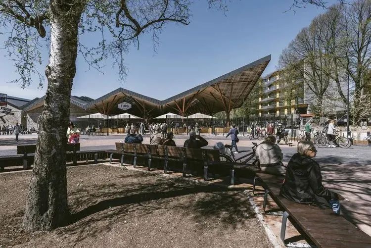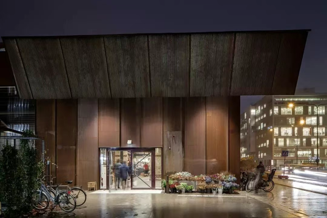 马尔默位于瑞典的南部,作为瑞典的第三大城市,这里是重要的贸易中心。2016年占地面积约1500㎡的马尔默市场隆重开业,它的前身是一个旧货运站。新的建筑保留了原有建筑红砖墙的历史感,设计师还用同色调的耐候钢在旁边模仿建了一个新建筑,拓大了空间,整体是简洁明快的工业气息。