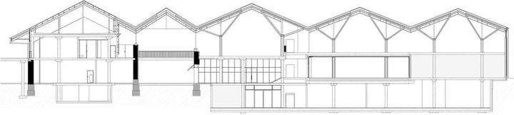 原建筑由三座两层楼高的仓库组成,这些石灰石外墙的仓库建于19世纪70年代,其功能随着市场在20世纪90年代开业而改变。此次建筑设计希望重点突出充满力量的结构元素,因此扩建了一片巨大的锯齿状屋顶。屋顶的形状随原本建筑的形状和大小连绵起伏。
