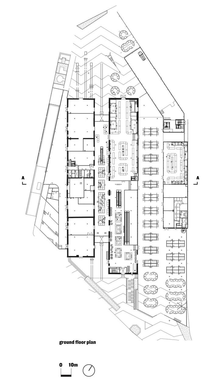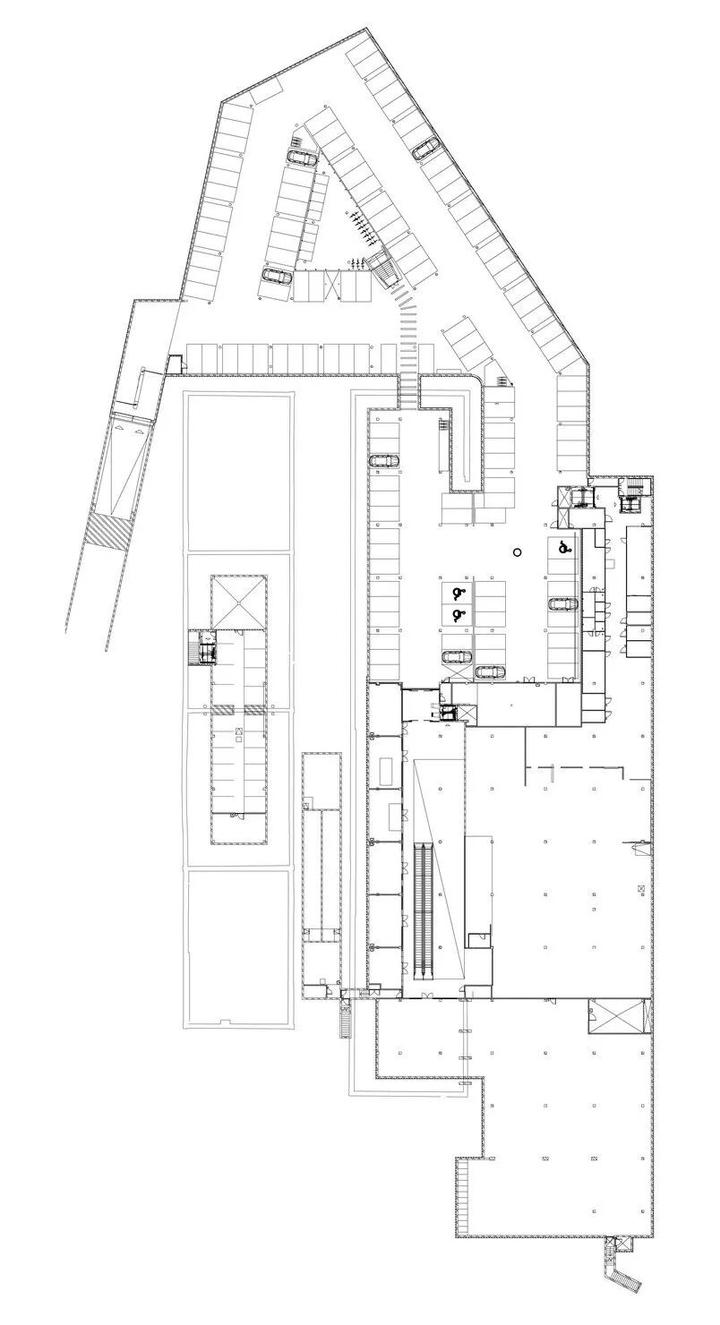 市场内部的改造依据三层既有平面和平面之间的空间布局,并增加了用于容纳新功能空间的地下室。