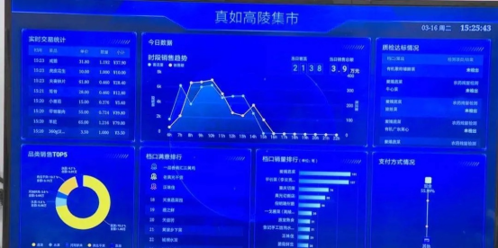 高陵集市搭建了数字化管理平台,打通了计量、追溯、收银等环节,不仅可以实时监测摊位的交易情况,以指导商户经营,还能保证商品安全可溯源。