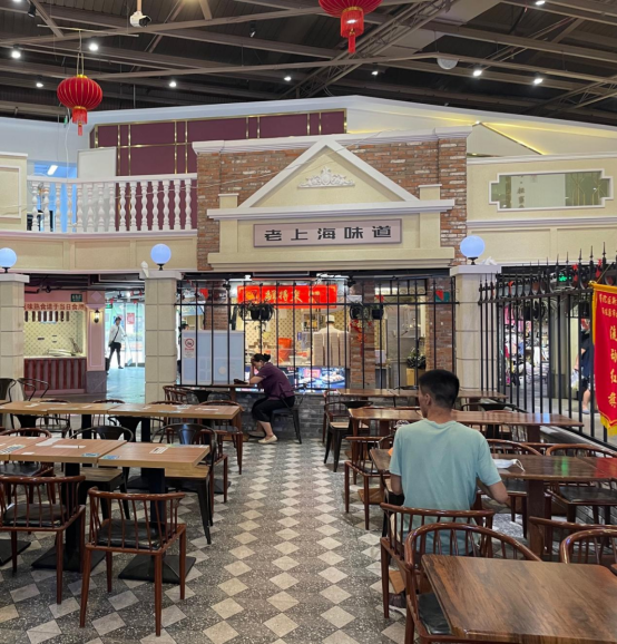 整个装潢设计追求一种民国复古风,穿行在集市中,抬头就会看到老上海的店招,仿佛穿越到了三十年代。