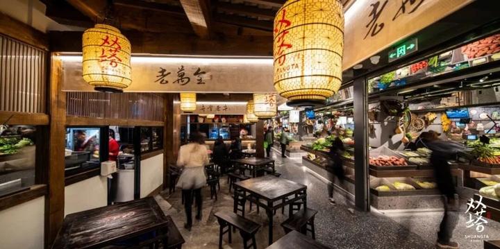 双塔市集项目整体改造与室内设计团队内建筑以“家的方向”为设计理念,力图还原老苏州的记忆、留住苏州人的时令饮食等习惯。品牌与视觉设计团队在平面设计与软装上也都展示了许多苏州元素。