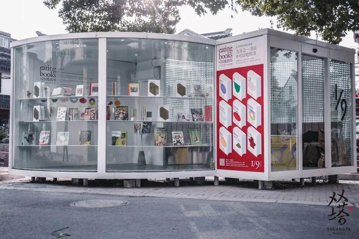 6.市集区旁边,最小书店1/9书店在室外与双塔市集隔路相望,同时也推出了自己的开业展览“可以吃的书”展览。原本仿远于生活的书籍被重新带回大家身边,带给了人们更多生活的灵感。