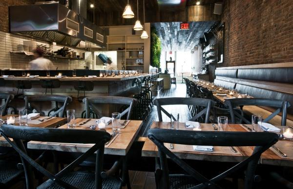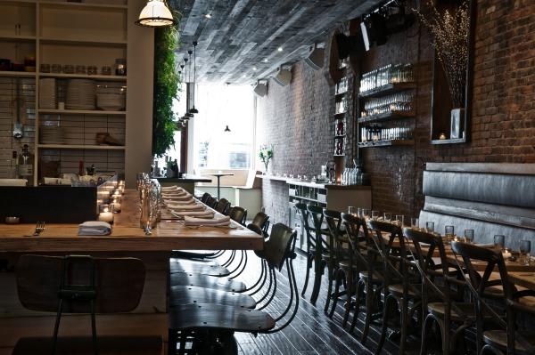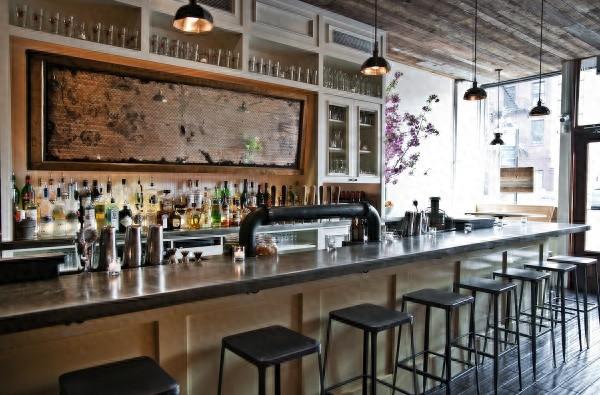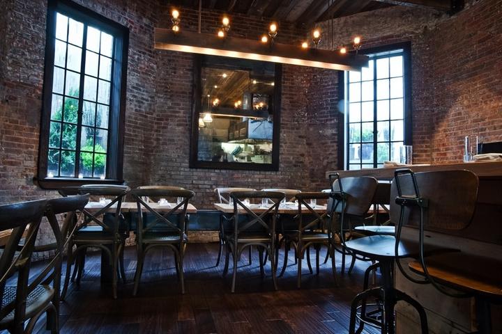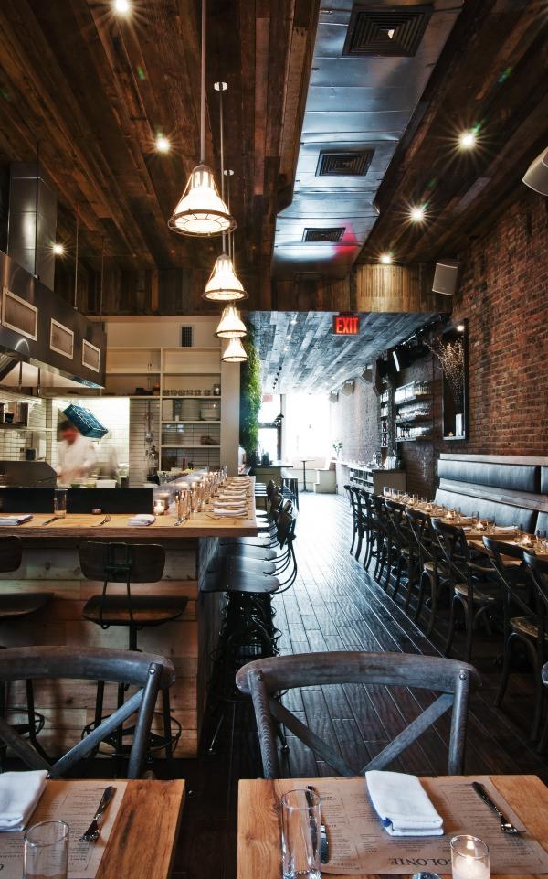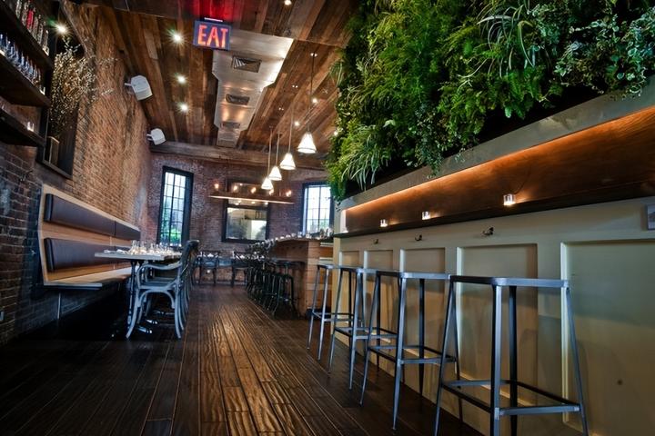 因此,前窗的两张长凳和沿着空间一侧的座位以前是教堂的长椅。地板、天花板和桌子均由回收木材制成,酒吧的大镜子是古董玻璃,镜框属于前国际玩具中心,位于曼哈顿旁边的标志性玩具大厦内。业主在屋顶上发现的一根钢梁现在变成了照亮用餐区的枝形吊灯。为了给冰冷的钢材带来额外的温暖,还使用了裸露的灯泡。