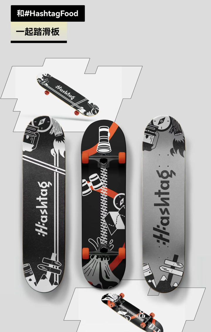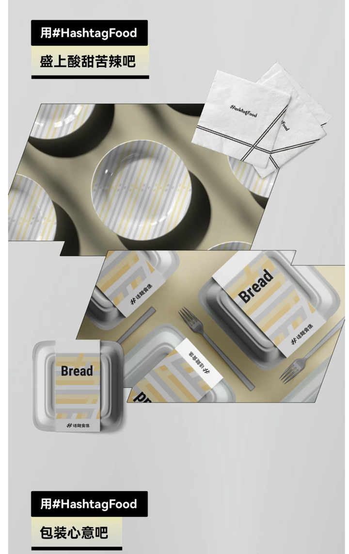 话题食集寓意着“品牌本身即话题”,不止有着话题玩味的名称,还推出了独立的视觉识别体系。标识元素由#符号变形并与英文名称首字母进行结合,点线交织,象征着城市脉络的纵横,又指代社交媒体上用#来为话题打标签。个性化的设计让「#话题品牌」成为一个超级符号,也为将来预设了更多的可能性,比如话题生鲜、话题艺术、话题市集等。
