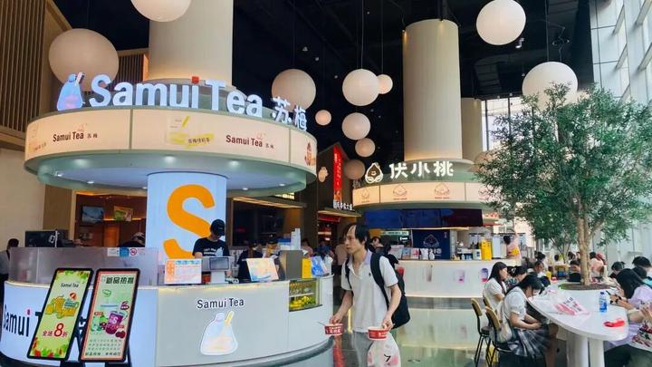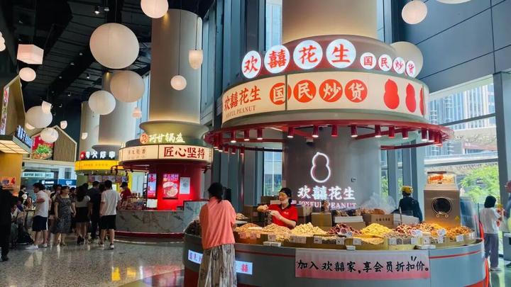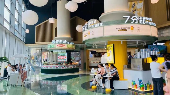 🔺7分甜、荷李活、欢囍花生、Samui Tea、伏小桃、阿甘锅盔、夸父炸串等小食饮品,则以圆型中岛规格替代常规的档口设计,没有边边角角遮挡视线,小店虽小,展示面及售卖、互动空间也足够宽阔。