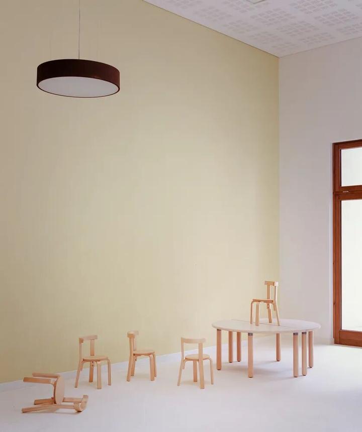 除了满足教学需要的功能性,设计团队尝试构件一个有公共空间体系的室内组织,呈现一个微缩的城市和社会。希望孩子们通过公共空间来学习礼仪和分寸;通过共享与尊重,建立友谊;通过身体的丈量,从小培养尺度感和物质化识美知觉。