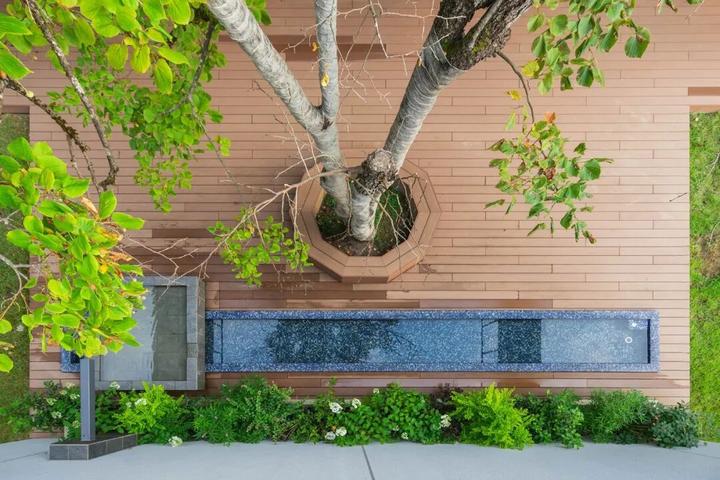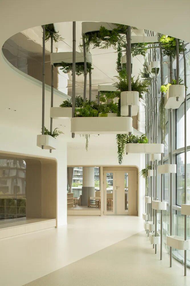 在整体设计中,亲生物元素渗透在每一处空间中,不论是温暖的木材还是天然的石材、植物、水,以及自然生态的外部环境,都让自然美学与教育融入了孩子们的玩乐学习中,达到了寓教于乐的目的。