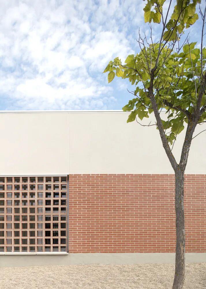 建筑整体采用了中性的色彩,通过红砖立面和屋顶延续了当地传统建筑风格,与周边的建筑环境和谐统一,在室内,为了防止潮湿对建筑的破坏,部分墙壁采用了涂有黄色釉面的瓷砖,不仅清晰地划分了功能区,还为空间注入了活力。设计结合简约的体量与线条,让孩子们在乡土建筑的熏陶下,又具有现代审美的能力。