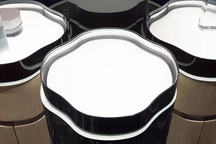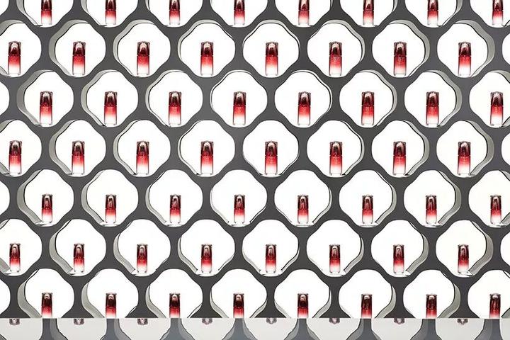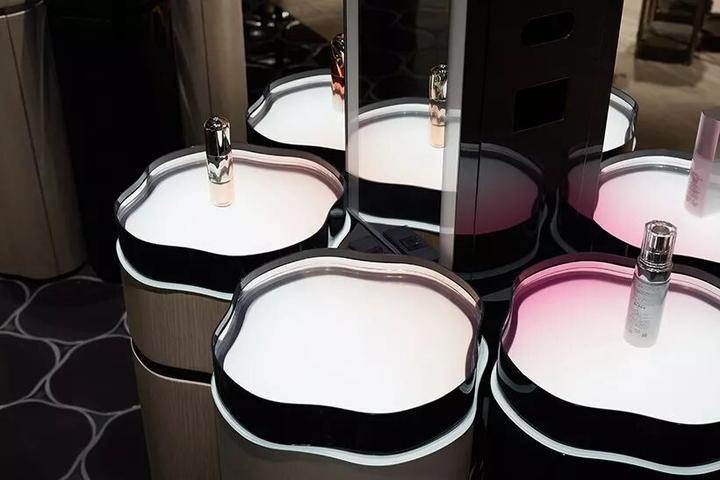 材质的运用概念更加有创意,采用资生堂最招牌的几样产品作为选材的灵感来源。
