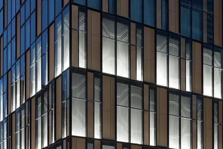 整栋建筑的外立面由玻璃幕墙和橡木板来装饰,虚实对比、序列感十足。