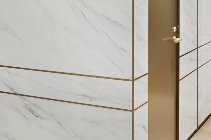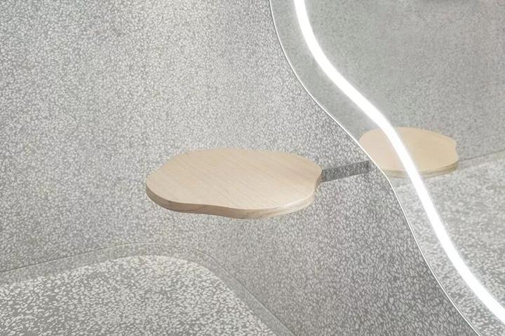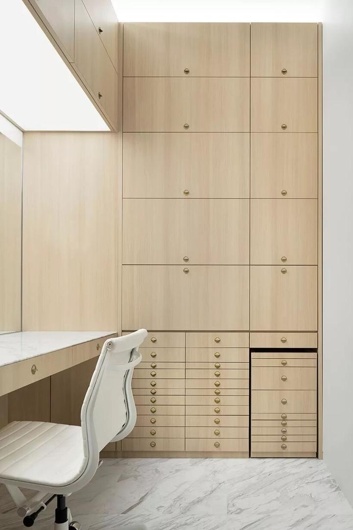 私人美容室有着柔和的灯光,柜门的拉手也是山茶花造型,无处不体现出设计的精致高级感。