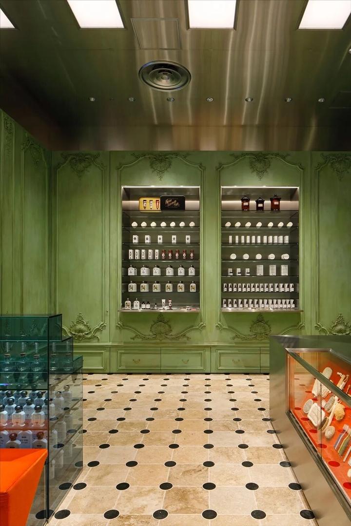 与所有其他 Officine Universelle Buly 零售空间类似,室内设计由联合创始人 Ramdane Touhami 和该品牌附属的巴黎创意机构 Art Recherche Industrie 创作。