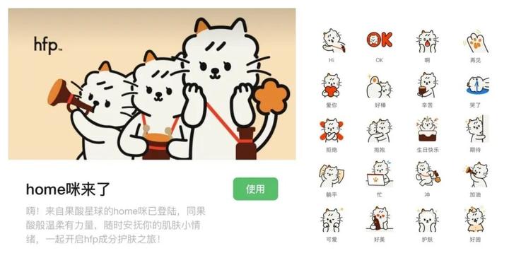 在社交媒体应用方面,hfp围绕「home咪」创作微信表情包专辑,将人格化品牌形象融入用户的日常,进一步加深用户对品牌的情感联结。