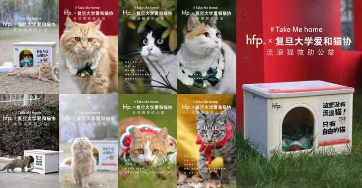 不仅如此,hfp积极践行企业社会责任,携手复旦大学爱和猫协发起「Take Me home流浪猫公益计划」,呼吁大众以领养代替购买;同时为流浪猫捐赠防风猫屋、毛毯及食物,帮助它们温暖、平安且舒适地度过寒冬。