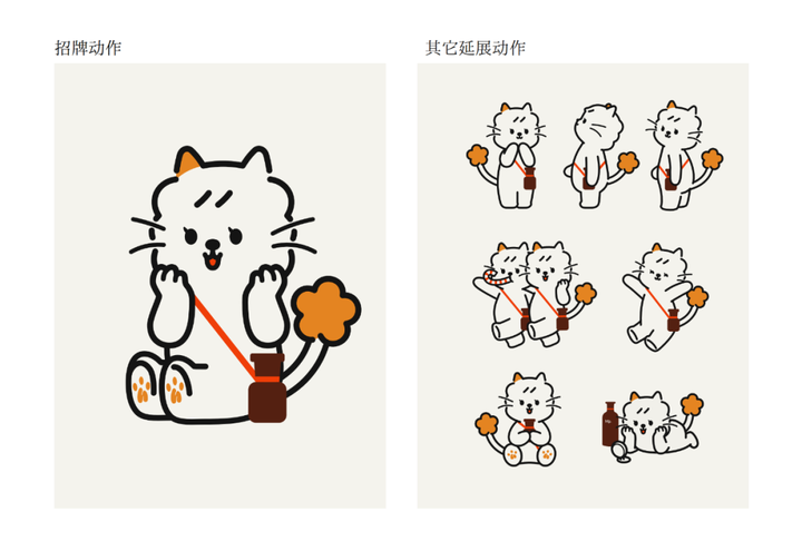 从形象档案中可见,以王牌果酸线为灵感的毛色(果酸色耳朵、尾巴)和王牌产品“hfp果酸水”形态的挎包,共同构成了「home咪」的视觉符号;猫咪的“h”形肉垫,也承载了品牌名称缩写,为IP呈现烙上深刻的品牌印记。