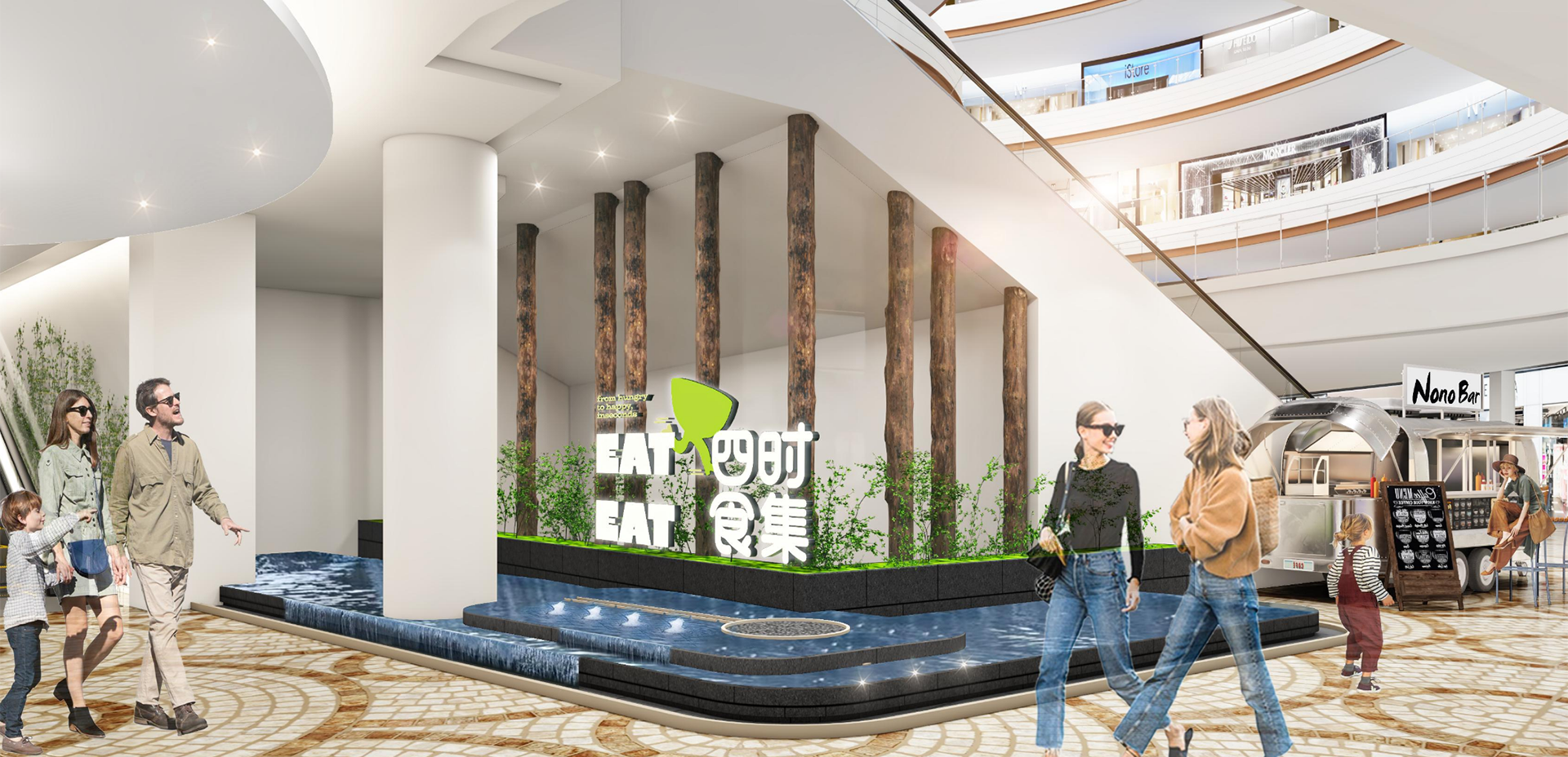 我们从 LOGO 设计到空间打造,都紧扣四季脉络 —— 春有绿植绕餐台,夏伴叠水尝鲜食,秋借光影品甜意,冬凭暖光享烟火,只为在快节奏生活里,让人们于一餐一食间寻得片刻宁静,在感受四季风味流转的同时,触摸食物文化与生活美学的温度。