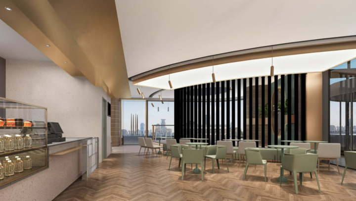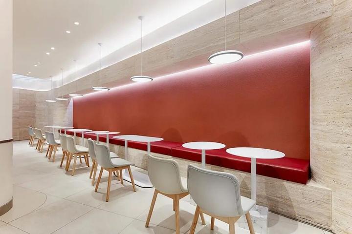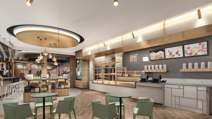 奈雪一直致力于打造一种简单、安静的生活状态。在颜色搭配上,花城汇店选用温暖的木质色调,因为暖色自带平和的特性,使人进入这个空间时自然而然就放松下来,也更容易激发人们的食欲。所有光源都不直射眼睛,整体氛围明亮而不刺眼。