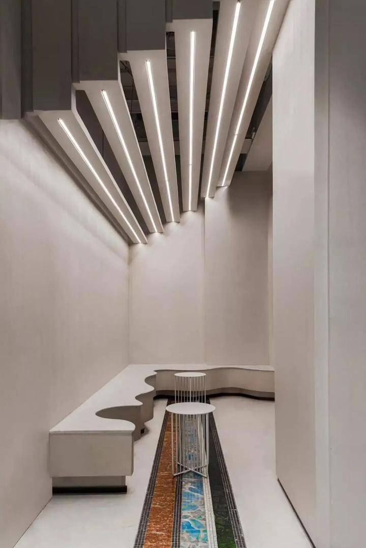 这次摆脱了设计常用的流行元素,设计师将运用在美术馆等艺术空间里的美学概念放进花城汇店。比如简洁流畅的线条,比如裸露的材料本身。
