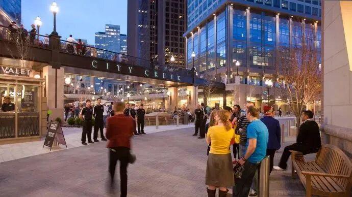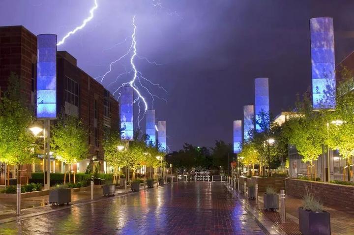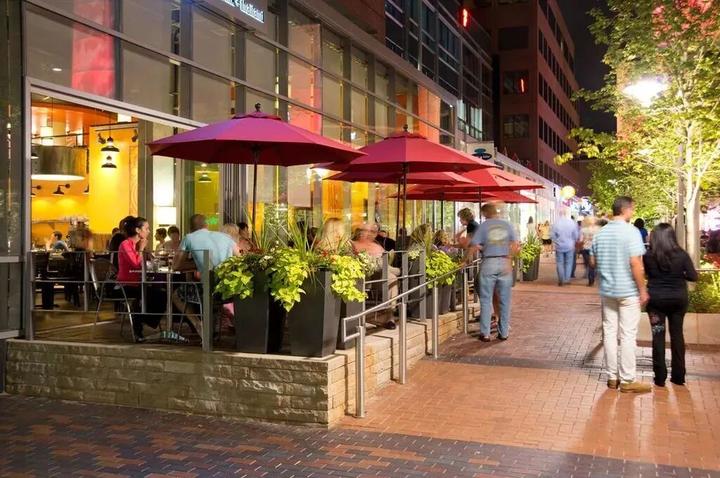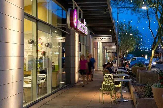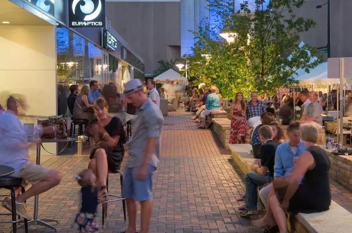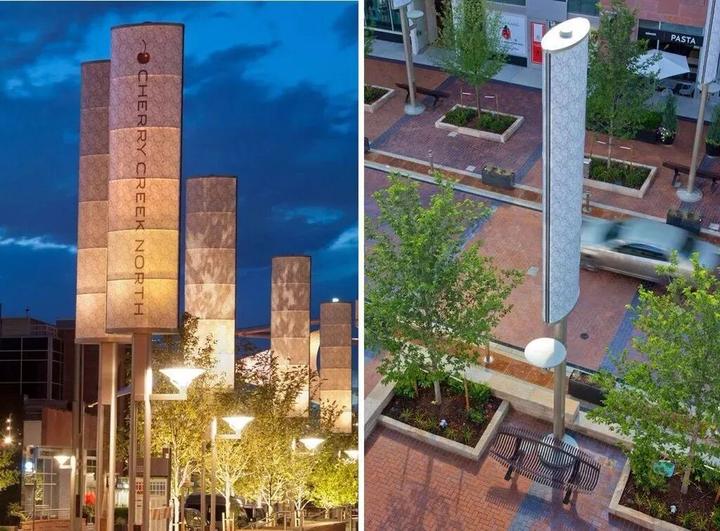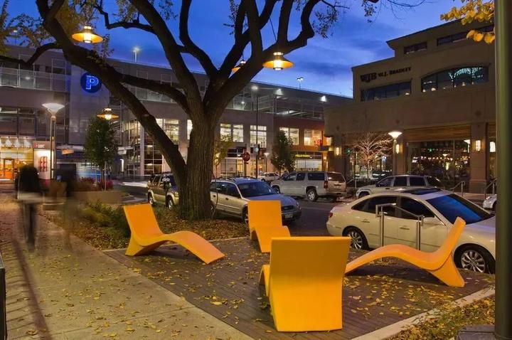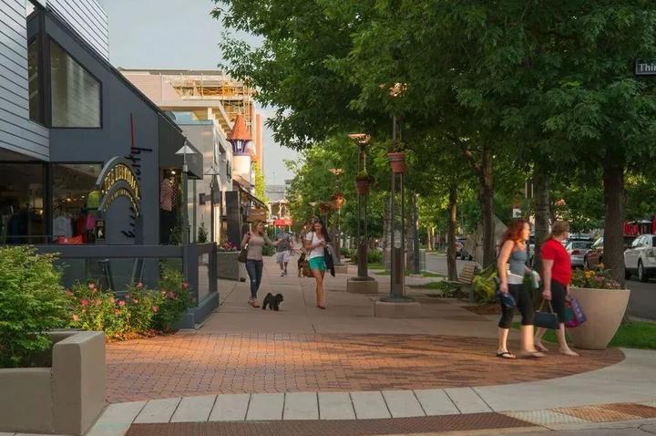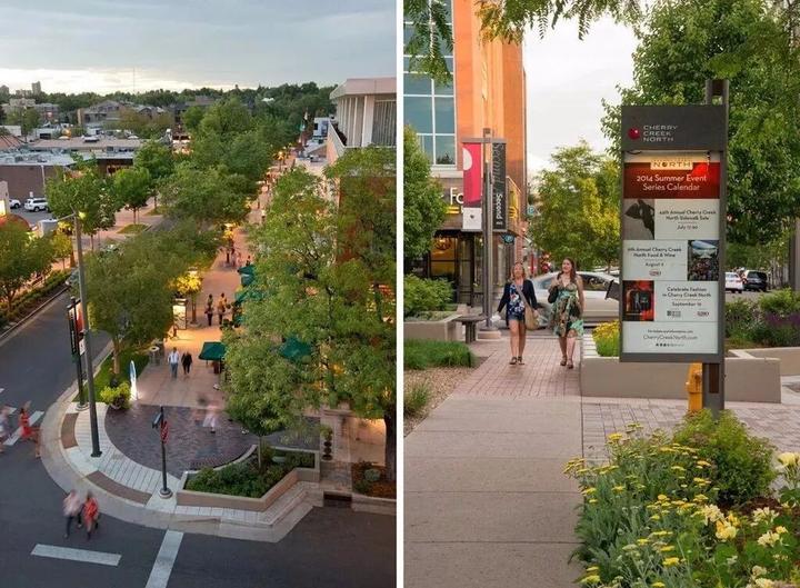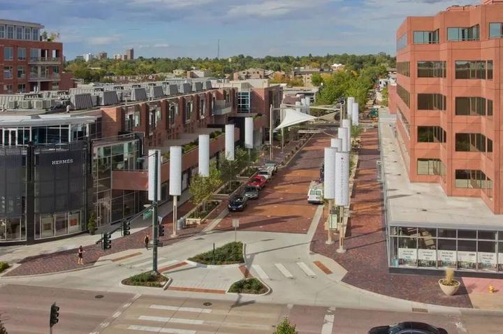 运用创新标识、行人照明、公共艺术等元素打造了丰富的的购物公共空间,成为科罗拉多州首屈一指的户外购物区。
