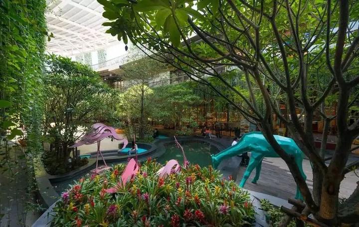 整座购物中心的空间设计上,汇集了许多大型城市的都会风格,如纽约、伦敦和东京等元素…并且巧妙地运用室内与户外的空间,打造如住宅社区般的大都会购物中心,让人在逛街的同时,还能欣赏绿树林荫的舒服景色,营造惬意的氛围。