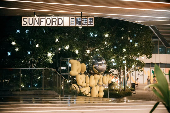 项目另外一大创新亮点是拥有上海最大、面积达6500平方米的超维度全景天幕,突破了室内外及天气限制,打造了一个24小时全天候的多元活力中心。空中绿色走廊环绕成花园,用连廊串联项目建筑,联动商业和办公,为消费者提供了一个舒适、便捷的购物环境。