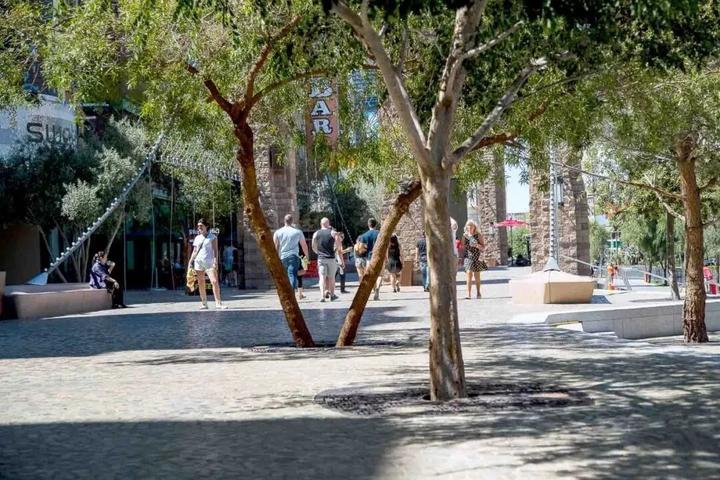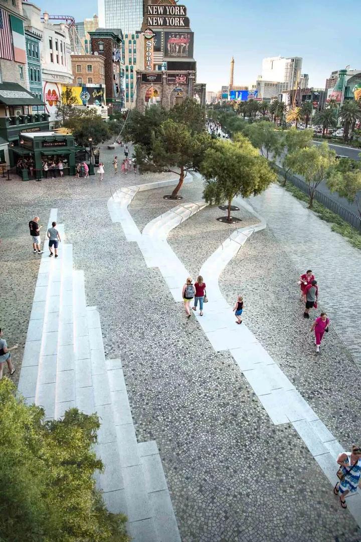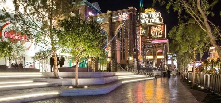 拉斯维加斯大道公共空间设计改造是首先进行了两个酒店外观翻新,连同周围的公共空间,以及大道上的第一个公园。将拉斯维加斯大道的体验与行人友好的开放空间融为一体,提供更加具有亲和力的感受。周边酒店开放了门面,并利用精品租户和人行道咖啡馆来创建店面零售空间,保证公众的曝光和行人交通。
