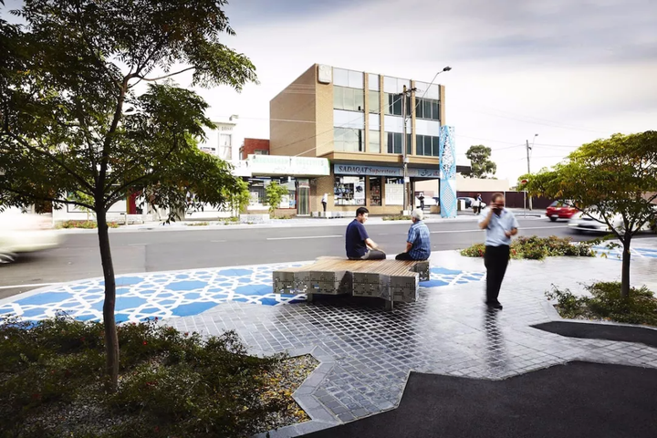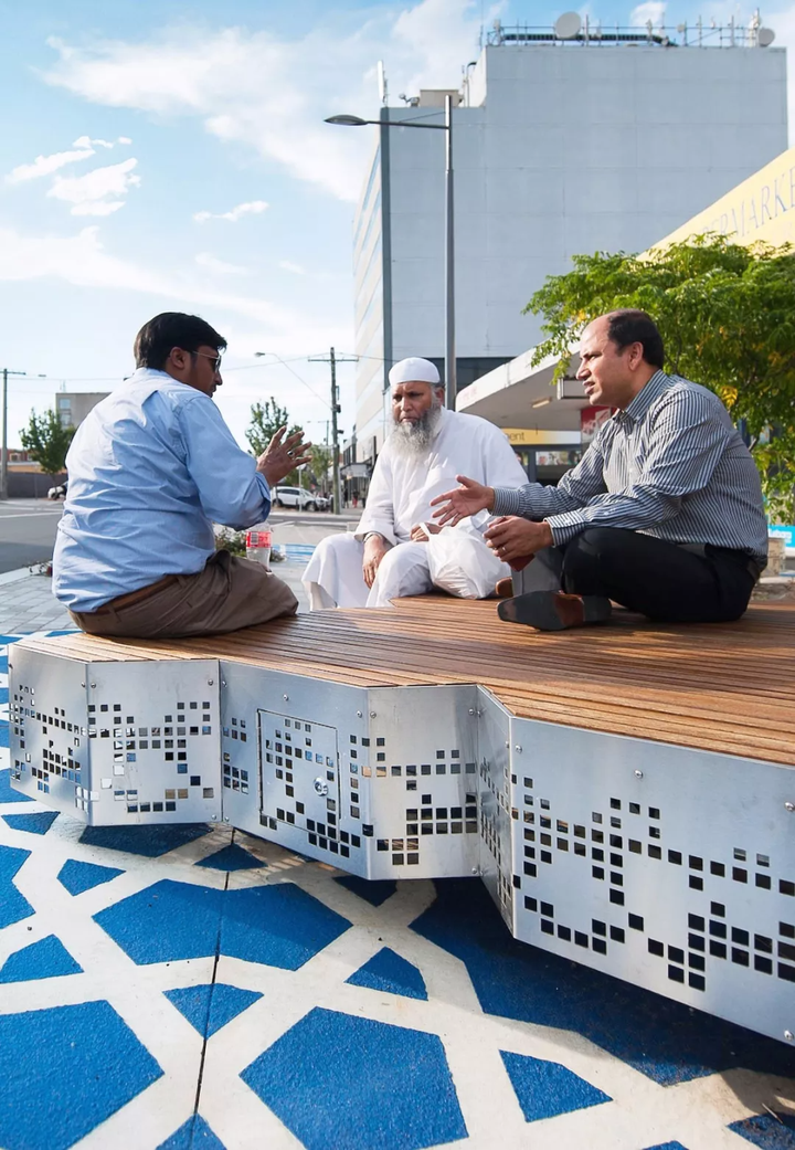阿富汗市集展现了设计公共文化空间的新方向——不囿于传统的片区形象塑造。通过社区调研,设计团队得以更好地理解人们使用现有空间的方式,以及更好地融合特定文化需求的方式。例如,定制的休憩座位区的排布方式重新诠释了阿拉伯传统文化中清真寺中的“suffah”区域,也称为高台。在现代澳大利亚城市语境中,这里是人们可以用他们熟悉的方式进行社交的场所。