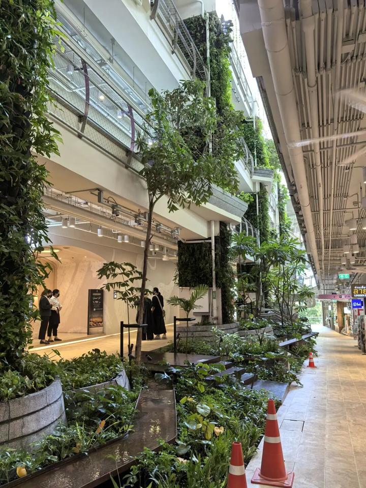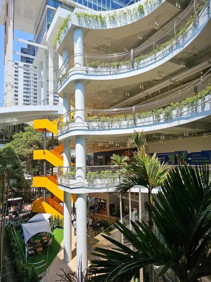 为满足城市居民对绿地生活的向往,Marché Thonglor商场延续了东南亚的热带风情,精心打造了约2300平方米的绿地,巧妙连接了室内外区域。项目更在绿地内设计了一个超大型宠物友好公园,将大面积绿植栽种于商场外部,因此被誉为“垂直绿洲”。相较于传统商圈的纯购物环境,这里更注重生活品质,氛围更慢节奏、更舒缓。